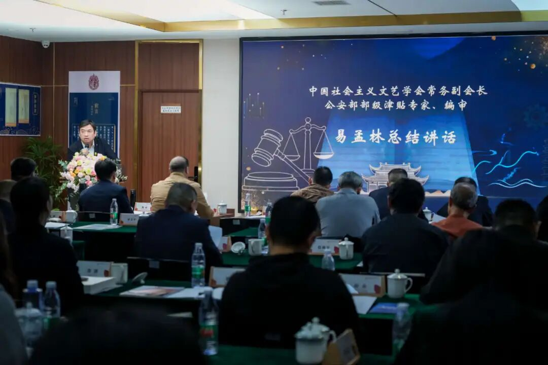 论坛最后,中国社会主义文艺学会常务副会长、公安部部级津贴专家易孟林作总结讲话。他对本次研讨会的成功举办及瀛启法律服务部的成立表示祝贺,高度评价了会议成果,并围绕法治文艺的繁荣发展、法治文化的创新路径及其对法治中国建设的重要意义进行了深刻阐述,为未来工作指明了方向。