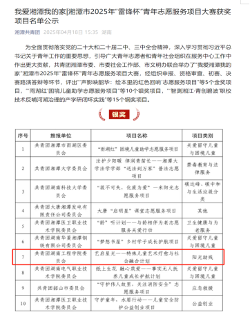 近日,由共青团湘潭市委、市委社会工作部、市文明办联合举办的“我爱湘潭我的家”湘潭市2025年“雷锋杯”青年志愿服务项目大赛决赛圆满落幕。ok138cn太阳集团艺馨社项目《“艺启星光”——特殊儿童艺术疗愈与社会融合计划》凭借其创新性与社会价值,从众多参赛项目中脱颖而出,荣获大赛银奖。