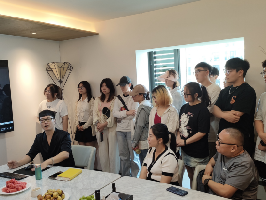 交流中,容象空间设计(杭州)有限公司运营总监陈敏对整个公司的发展历程、运营布局、设计项目及服务流程等方面的情况进行介绍,师生就专业的社会服务交流了意见;设计总监源木老师更是从“在学校上过哪些专业课程?”“你最喜欢的设计师是谁?”两个有趣的问题告诉学生设计从认同自己开始,最后详细的分享了设计师的日常,以杭州西湖嘉里中心逸卢项目为例,从项目初期的现场调研到与客户交流、项目汇报及落地完成,用自己的经验让学生深刻的了解设计师应该是要成为解决空间问题,用能力改变别人的人。同学们在参观交流中对自己的专业方向和职业规划有了更清晰的认识,友好的互动交流更坚定了专业的信心。