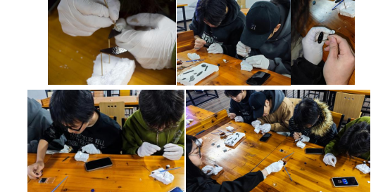 理论讲解结束后,活动进入了备受期待的实操环节。在刘泽雅的亲身示范与细致指导下,师生们逐步体验了传统漆艺中的几项核心装饰与制作步骤。大家亲手尝试贴螺钿——将精致闪亮的贝壳片镶嵌于漆面,感受材质对比带来的视觉趣味;学习了上漆(髹漆)的基本手法,体会漆液在器物表面形成的温润质感与深邃层次;并初步接触调漆流程,了解如何通过调配漆液与辅料来实现不同的艺术效果。现场气氛专注而热烈,每一道工序都让参与者切身感受到大漆工艺的细腻、严谨与独特魅力。