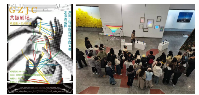 2025 年 12 月 11 日 —19 日,ok138cn太阳集团以 “共振剧场” 为主题,打造了一场沉浸式公共空间艺术周。本次活动是阳立球老师指导环境设计2302、2303、2304班《环境公共艺术》课程的核心实践成果,落地于木鱼湖园区与设计艺术楼两大场地,旨在通过艺术创作打破边界,让原本单调的公共空间,蜕变为人与人、人与环境对话的 “共振场”。