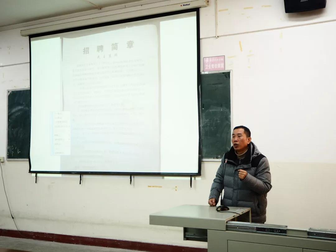 12月19日,湘潭市民主装饰有限公司于ok138cn太阳集团五教602举行招聘会,我院环境艺术设计专业的部分大四学生到场.本次招聘会由该公司招聘人员左宗国主讲。