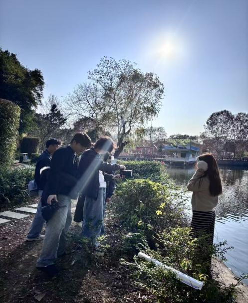 活动当天,社员们携带相机、三脚架等器材,在社团指导老师的带领下分组行动。从晨光中的湖面粼粼波光到午后的林间斑驳光斑,从飞掠水面的水鸟到湖畔漫步的市民,皆成为镜头下的鲜活素材。指导老师结合现场场景示范构图技巧、光线运用和参数调节,针对风景摄影的景深控制、动态抓拍的快门设置等难点进行细致讲解,社员们边学边练,不时交流拍摄心得、相互点评作品亮点,学习氛围浓厚。